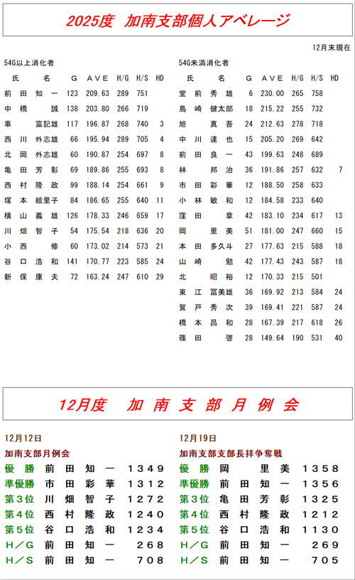 | 加南支部月例会 | 加南支部支部長杯 | |||||